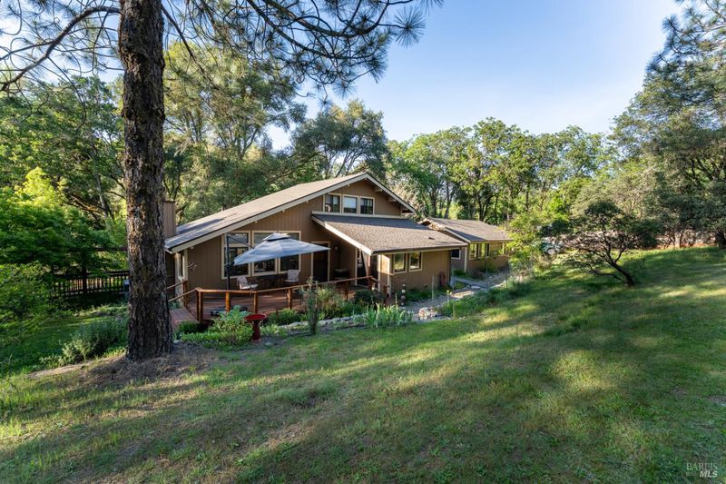 Tucked away on approximately 1.6 private, fully fenced acres, this charming 2-bedroom, 2-bathroom home offers the perfect blend of comfort, character, and country living. Surrounded by natural beauty, the property features a seasonal creek that adds a peaceful, picturesque touch to the landscape. Inside, you'll find warm and inviting living spaces highlighted by stunning wood beam ceilings that bring rustic elegance and a sense of openness. The home flows seamlessly to expansive decks, ideal for entertaining guests, enjoying morning coffee, or taking in the serene surroundings. The acreage provides ample room for animals, gardening, or simply enjoying the outdoors. Established garden areas offer space to cultivate your own produce or create a personal oasis. A detached garage includes an additional room, perfect for a workshop, studio, home office, or extra storage adding flexibility to fit your lifestyle needs. This property delivers privacy, usable land, and timeless charm, an ideal retreat for those seeking space, tranquility, and versatility.