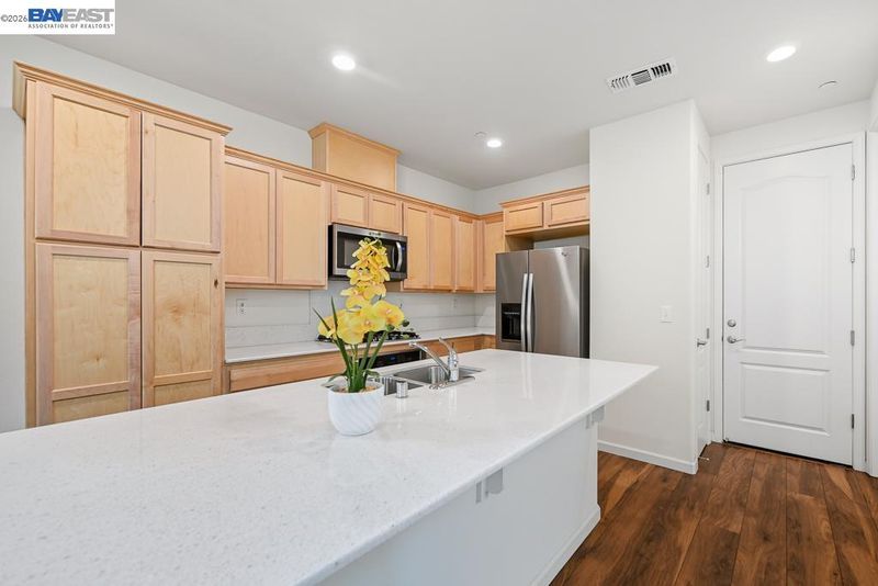 Welcome to this beautifully maintained move-in ready 3-bedroom, 2.5-bath that offers both comfort and charm. Built in 2017, like new & pristine throughout, this home has been lovingly cared for by its original owner. Step inside and be greeted by a truly beautiful gourmet kitchen with a large quartz-topped island, modern cabinetry, built-in stainless steel appliances. and extends throughout the large, bright, great room floorplan perfect for entertaining. The spacious primary bedroom features a sunny balcony and extra-large bathroom with two vanities & large walk in closet. Energy efficient with OWNED solar included in sale. Bright and airy with high ceilings, tankless water heater and attached garage. Prime commuter location close to BART station, Hwy 92/880, San Mateo Bridge and Chabot College, and just minutes to Southland Mall for great dining and shopping, newly developed Eden Shores complex and downtown Hayward. Greenwood Park is just few minutes’ walk from your front door! This turnkey home blends comfort, style, and location seamlessly. ABSOLUTE MUST SEE!