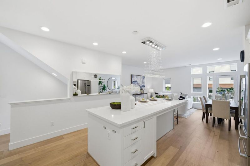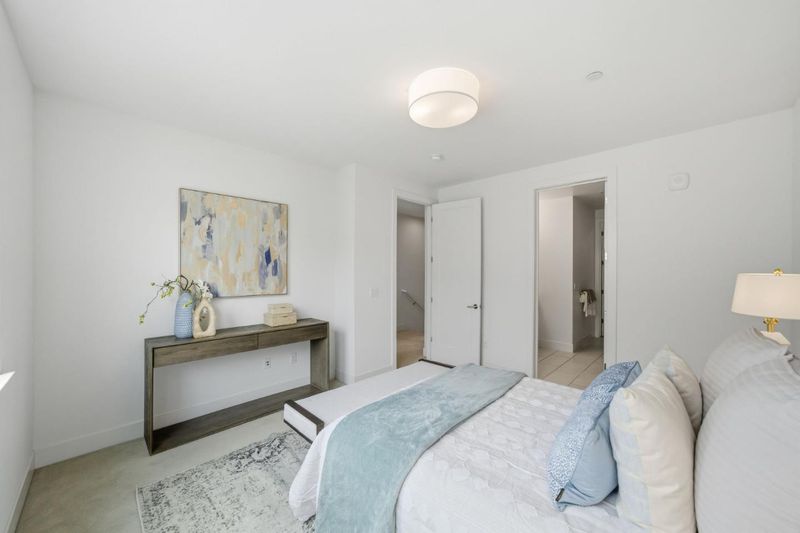 Built in 2020, this upgraded townhome offers 4 bedrooms and 4 bathrooms, including a full bedroom and bath on every level, ideal for multigenerational living. Enjoy abundant natural light and an open-concept layout. The kitchen features stainless steel Bosch appliances, a gas stove, modern finishes, and a large island with counter seating. The spacious primary suite offers dual sinks, a large shower, and a walk-in closet. Two private balconies provide additional outdoor space, and laundry is conveniently located inside. The finished garage features epoxy flooring, and thoughtful smart-home upgrades include Lutron Caseta lighting, Apple Home Key-compatible smart locks, hardwired Ethernet throughout, gigabit fiber availability, and EV charging readiness. Enjoy low HOA dues and an unbeatable Downtown Fremont location near BART, major commute routes, Whole Foods, Safeway, Trader Joes, Target, Meta/Google/Apple shuttle stops, parks, and popular dining along the State Street corridor, with a variety of local favorites just moments away.