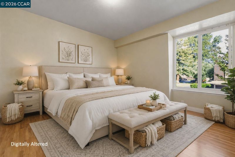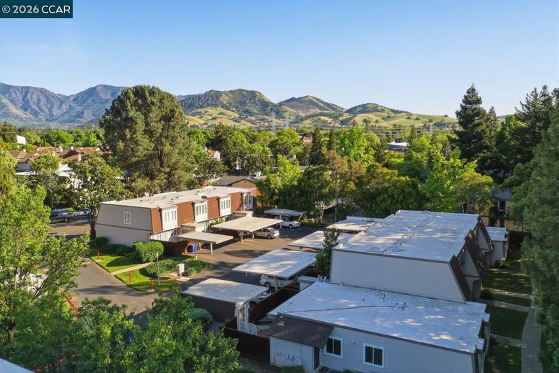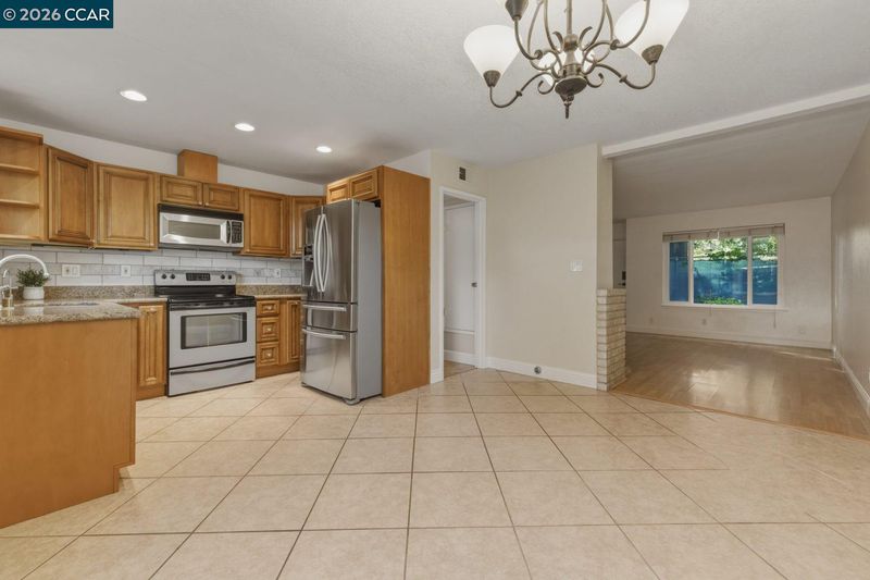 This charming home features 2 bedrooms, 1.5 bathrooms, and 1,093 square feet of thoughtfully designed living space. The updated kitchen boasts custom cabinetry, granite countertops, and stainless steel appliances, and tile flooring, seamlessly flowing into an oversized dining area—perfect for entertaining. Laminate flooring runs throughout, while the spacious living room offers a cozy fireplace, creating a warm and inviting atmosphere. Upstairs, you’ll find two generously sized bedrooms, including one with a walk-in closet and the other with a private balcony, along with a full bathroom. Additional highlights include dual-pane windows, a skylight for abundant natural light, and an in-unit laundry area with washer and dryer included. The home also comes with two assigned parking spaces—one covered and one uncovered—with direct access behind the backyard gate. Enjoy peaceful, well-maintained grounds with walking paths and a beautiful pool view from the unit. Relax or entertain in your private patio, ideal for outdoor living. Ideally located just steps from Clayton Valley Shopping Center, offering restaurants, Starbucks, grocery stores, and more—this home perfectly blends comfort, convenience, and modern style.
