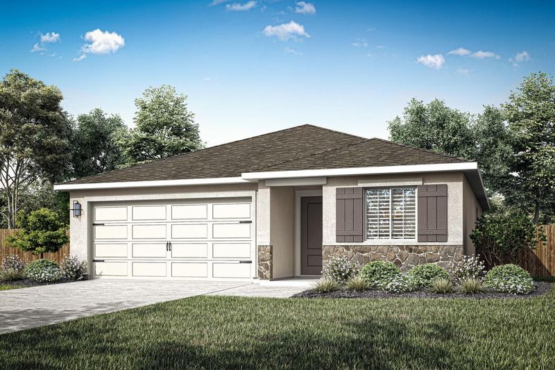 The Avila floor plan presents a thoughtfully designed single-story home that effortlessly combines functionality with style. Featuring three spacious bedrooms, this floorplan is ideal for both comfortable living and entertaining. The open layout enhances the sense of space, with the kitchen seamlessly flowing into the family and dining areas, creating a harmonious and inclusive environment. The kitchen boasts modern stainless-steel appliances and elegant plank flooring, offering both practicality and sophistication. The master bathroom is a luxurious retreat, highlighted by a large vanity and a sleek step-in shower. For added convenience, the secondary bathroom includes a versatile tub/shower combination.