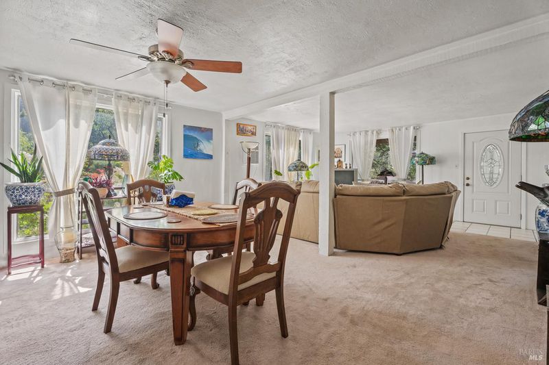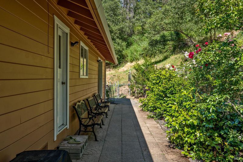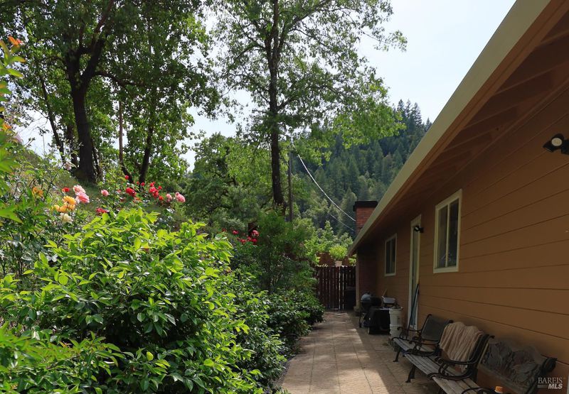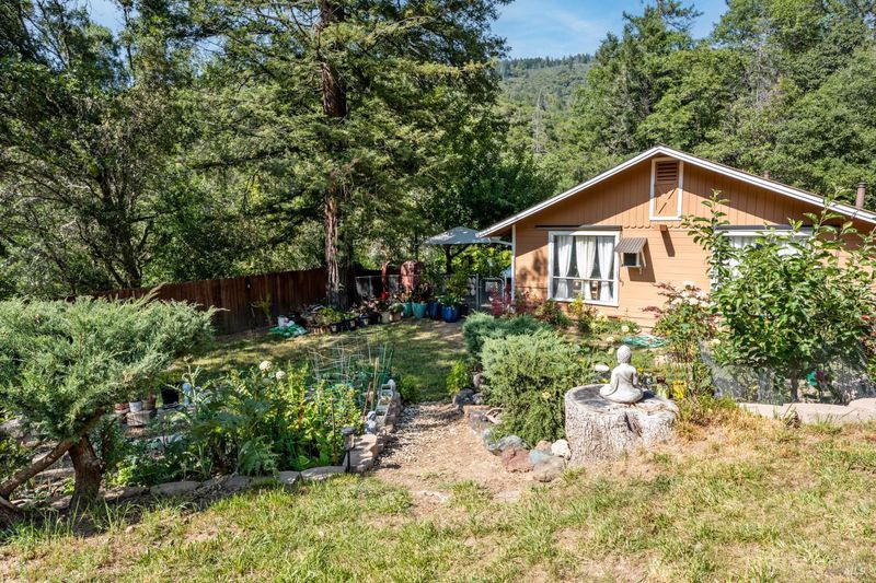 Tucked in the forested hills of Redwood Valley, this 3-bed, 2-bath home offers 1,792 sq ft of peaceful living on 7.5 private acres. Surrounded by mature trees, terraced gardens, and mountain views, the property includes 932 sq ft of additional garage/utility space. Inside, enjoy a light-filled layout with large windows, a cozy wood-burning stove, and views of nature from every room. The vintage kitchen connects to a charming dining area overlooking the yard. A 4-year-old roof provides added peace of mind. Step outside to multiple patios perfect for entertaining or relaxing in the shade of the trees. Decorative landscaping, retaining walls, and fencing add both beauty and structure. A true standout feature is the abundant water supply, fed by both springs and a well, ideal for gardening, livestock, or expansion. Whether you're looking for a full-time residence, a peaceful getaway, or a self- sufficient lifestyle, this hidden gem offers privacy, space, and endless potential in a storybook setting.