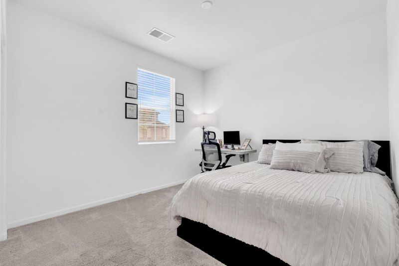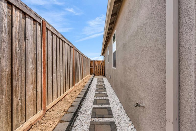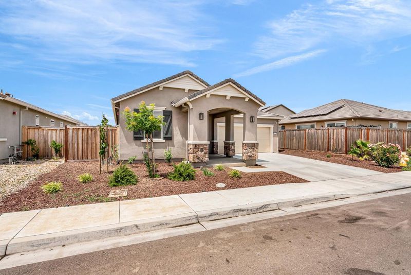 This beautifully maintained single-story home, built just three years ago, features a bright and open-concept layout with soaring 9-foot ceilings that enhance its spacious feel. The thoughtfully designed floorplan includes generously sized bedrooms, walk in closet and spacious bathrooms, providing ultimate comfort throughout. The kitchen is a delight with quartz countertops, ample cabinet space and pantry, a large center island and sink, plus a breakfast bar perfect for casual dining. The home is equipped with energy-efficient upgrades, including a solar energy system, tankless water heater, energy-efficient LED recessed lighting and smart thermostat. Additional highlights include stylish Sterling Oak plank flooring, a dedicated laundry room, and a finished, insulated garage. The newly landscaped backyard offers a covered patio and a smart, water-conserving irrigation system with weather-based controls, perfect for easy, low-maintenance outdoor living. Conveniently located within walking distance of Walnut Grove School (K8) and a brand-new community park, this home combines comfort, efficiency, and modern living in a welcoming neighborhood.