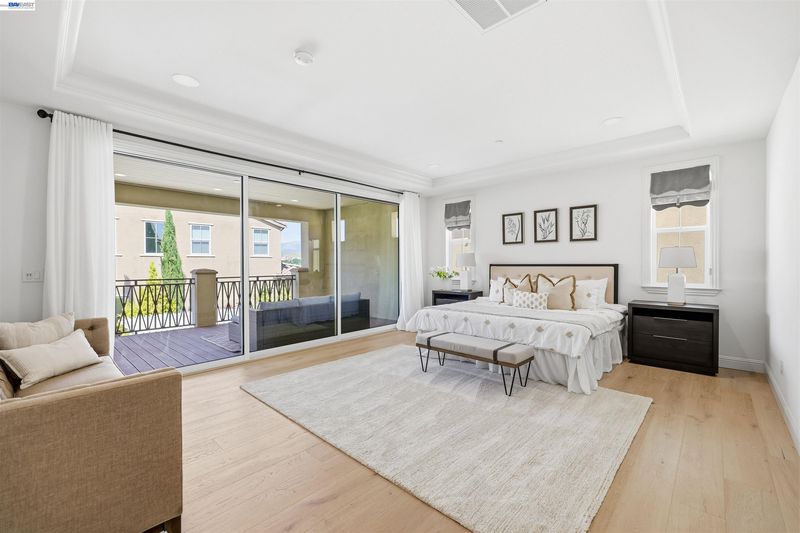 Welcome to 103 Camelia Ct, a stunning 2018-built Torino model by Toll Brothers in the prestigious Alita at Gale Ranch. This beautifully maintained 4-bedroom, 4.5-bath home offers 3,620 sqft of refined living space on the largest lot in the subdivision (10,318 sq ft), combining luxury, comfort, and breathtaking views of open space, rolling hills and Mount Diablo. Designed for modern living, the open-concept floor plan features granite flooring on the main level, maple hardwood upstairs, and an elegant iron spindle staircase. A dramatic 15-ft glass door opens to the California Room, creating seamless indoor-outdoor living. The resort-style backyard is an entertainer’s dream with a built-in BBQ, pergola, fire bowl, and beautifully curated rose, vegetable, succulent gardens, and fruit trees. The gourmet chef’s kitchen boasts granite countertops, a large island with extended breakfast bar, maple cabinetry, and premium built-in Jen-Air appliances including a double oven and microwave. The family room with gas fireplace and dining room with buffet add warmth and functionality. Upstairs, a versatile loft offers space for a home office, gym, or playroom. It can be easily convert to a 5th bedroom. The luxurious primary suite features a private balcony with Mt diablo view, dual walk-in closets, and spa-like comfort . Additional upgrades include dual-zone HVAC and a tankless water heater, Ideally located near top-rated schools (Gale Ranch Middle & Dougherty Valley High), City Center Bishop Ranch, Bridges Golf Club, parks, and scenic trails—this exceptional home offers the best of Gale Ranch living.