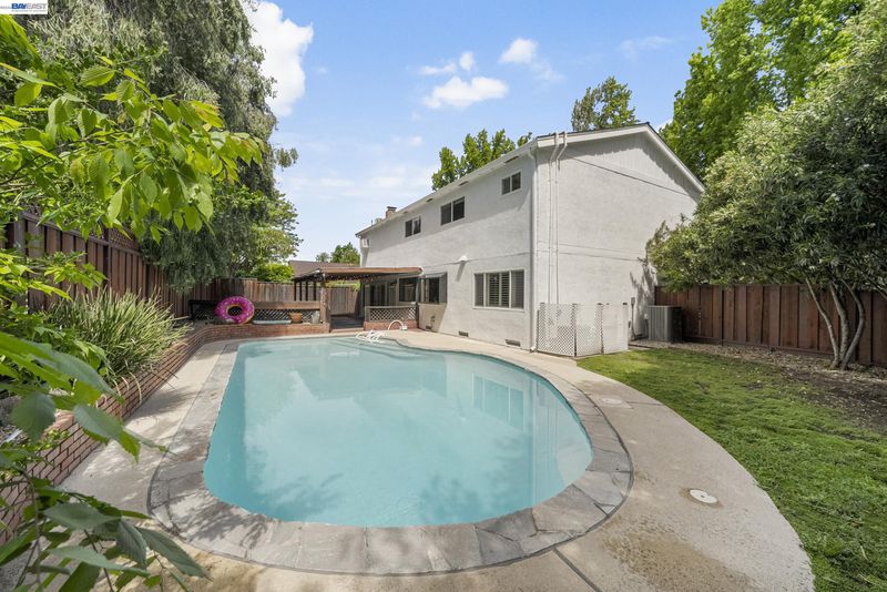 Welcome to one of Pleasanton Valley's most inviting family homes, where thoughtful updates, generous space, and an unbeatable location come together in all the right ways. Built in 1970 and lovingly updated over the years, this 2,488 sq ft home offers the character and craftsmanship of an established neighborhood with the fresh, modern finishes today's families are looking for. Rich hardwood floors flow through bright, open living spaces anchored by a stunning white brick fireplace with custom built-in shelving. The updated kitchen features white cabinetry, granite countertops, stainless steel appliances, and a sunny window overlooking the backyard, opening seamlessly to the family room and to the pool and covered patio beyond. With 4 bedrooms, a versatile bonus room, 2.5 remodeled bathrooms, and a finished 2-car garage complete with epoxy floors, recessed lighting, and its own mini-split system, there's room for every member of the family and every stage of life. The primary suite is a peaceful retreat, secondary bedrooms are spacious and bright, and every bathroom has been beautifully refreshed with quartz counters and designer finishes. Out back, a sparkling pool, pergola with string lights, and a dedicated game area make this yard the neighborhood destination all summer long. And the location? Hard to beat. Walnut Grove Elementary, Harvest Park Middle School, and Amador Valley High School are all within easy reach, along with downtown Pleasanton's beloved restaurants, shops, and community events just minutes away. This is Pleasanton living at its best.