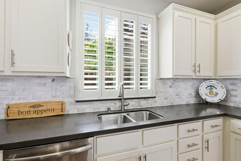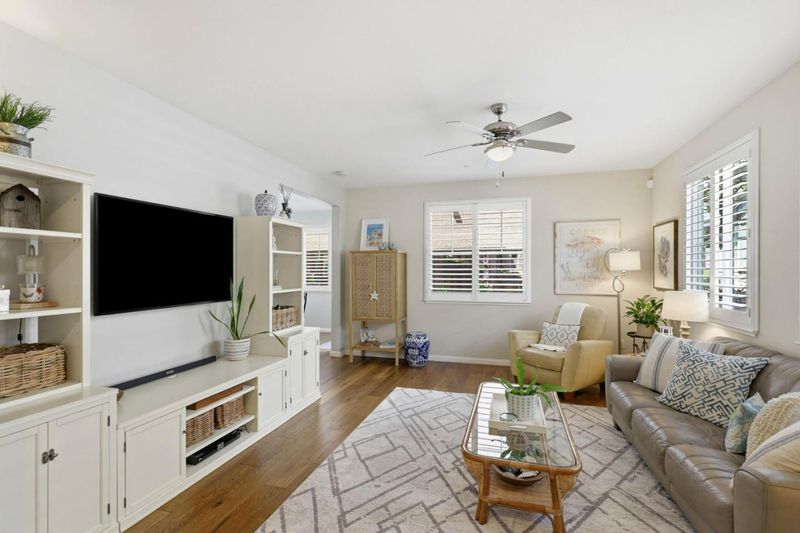 Located in a central Scotts Valley neighborhood, this elegant single family home, built in 2014, offers 3 bedrooms and 2.5 bathrooms, including a primary suite. Beautifully appointed with wide plank wood flooring downstairs, a contemporary kitchen, built-ins, air conditioning, window shutters plus an attached 2 car garage. The floor plan includes both a living room and a separate family room, along with an indoor laundry room. The kitchen features stone countertops, marble backsplash, stainless steel appliances and a gas stove. Outdoor spaces include a front porch and a private patio area. The community also features a common area with space to walk your pet or play on the grass, seating, and a gazebo to enjoy the ideal Scotts Valley weather.