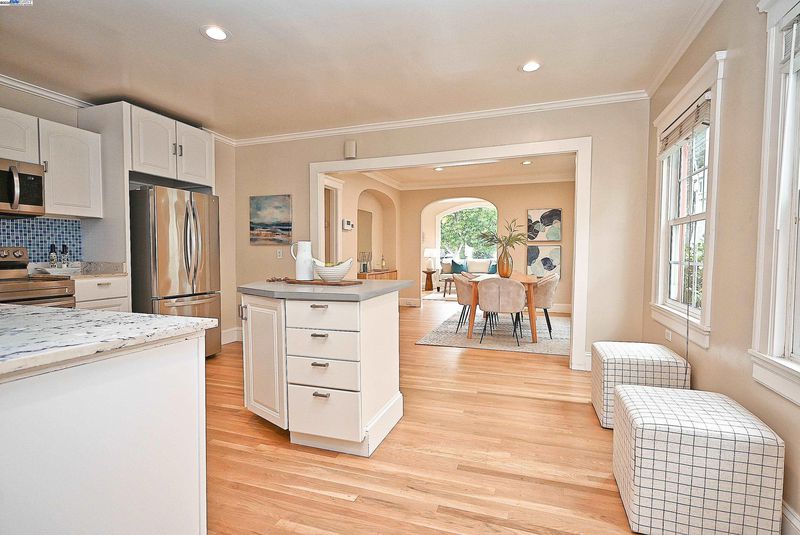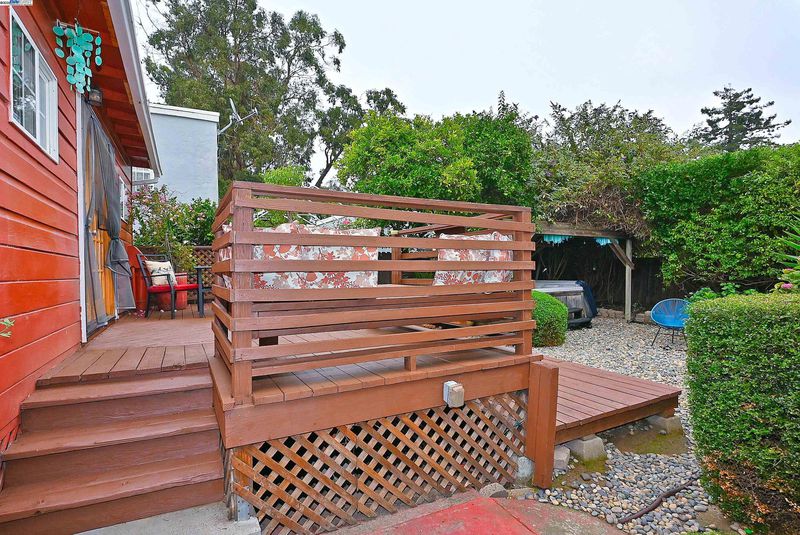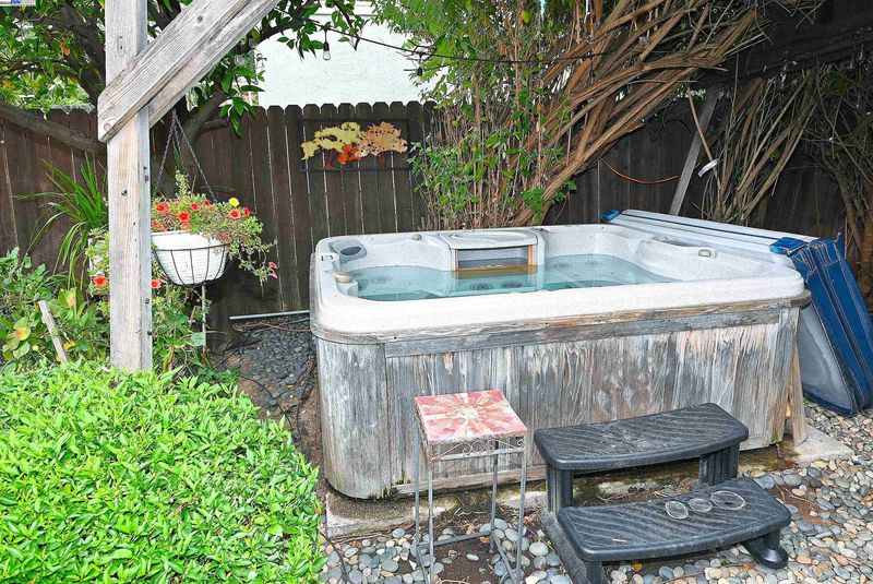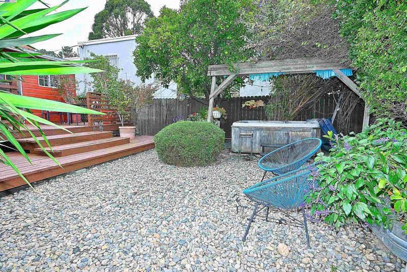 Located a short distance from Oakland’s Mills College, you'll find this Mediterranean style home has been lovingly updated throughout. Inside, you’ll find 1,214 sq.ft. of freshly painted living space, refinished hardwood floors and recessed lighting. The formal dining room leads seamlessly into the adjoining updated kitchen with Onyx counter tops, stainless steel appliances and island. Just past the kitchen is a utility room that opens to the lush, landscaped rear yard with it's redwood deck, detached garage and spa. Other amenities include dual pane windows, washer and dryer, central heat, EV Charging Station and leased solar system.