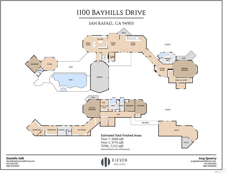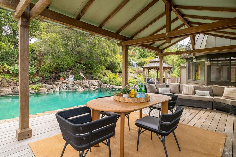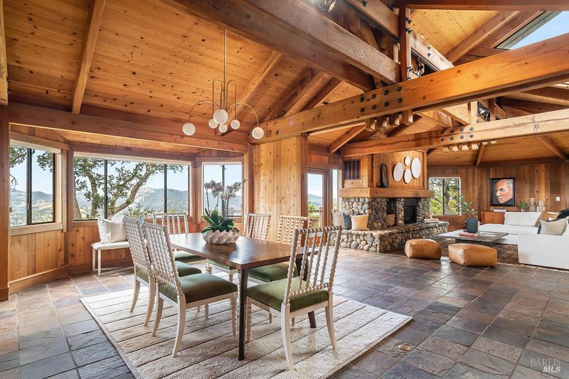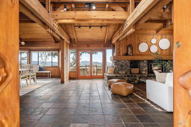 Set across 8.6 acres of extraordinary natural beauty, this custom-built estate is a rare expression of artistry and craftsmanship in dialogue with the land. More than a residence, it is a destinationan immersive environment where architecture, landscape, and light are composed with intention. Situated within the exclusive enclave of Woodcliff Hills Estates, the property is framed by mature oaks, sweeping vistas, and miles of scenic trails for hiking, biking, and riding. The setting evokes a private preserveexpansive, serene, and deeply connected to nature. Spanning over 7,200 square feet, the home unfolds with both grandeur and ease. Walls of glass draw the outdoors in, illuminating interiors and capturing the changing landscape as living art. Designed for both refined entertaining and everyday living, the home balances scale with intimacy. Arrival is marked by a circular drive and hand-carved walnut doors, setting a tone of quiet sophistication. A distinctive copper roof crowns the structure with timeless elegance. The residence offers five bedrooms, including an approximately 1,000 sq. ft. primary suite on the main level, privately situated in its own wing. Dual fireplaces, a sunlit Ipe deck, a tailored walk-in closet, and a dedicated meditation room create a retreat of rare calm. The en-suite bath, with its domed ceiling and natural light, offers a spa-like experience. The main living spaces reveal the home's artistic foundation: soaring open-beam ceilings, Douglas fir walls, slate floors, and a dramatic stone hearth create warmth, texture, and presence. The dining and family rooms flow seamlessly into a chef's kitchen with birds-eye maple cabinetry, designed for both gathering and function.Outdoors, a level expanse unfolds with Ipe decking, a pool and spa, and grounds that echo the surrounding landscape. A separate pool houseserving as a guest residenceoffers a bedroom, living area, full bath, and outdoor shower, equally suited as a studio or creative retreat. The lower level provides additional living and creative space, including a family / play room, workshop, wine storage, and three bedroomsone ideal as a secondary suite with private deck and garden views. A grand, detached office offers further flexibility for work, art, or wellness. An exceptional estate defined by beauty, intention, and a sense of place.