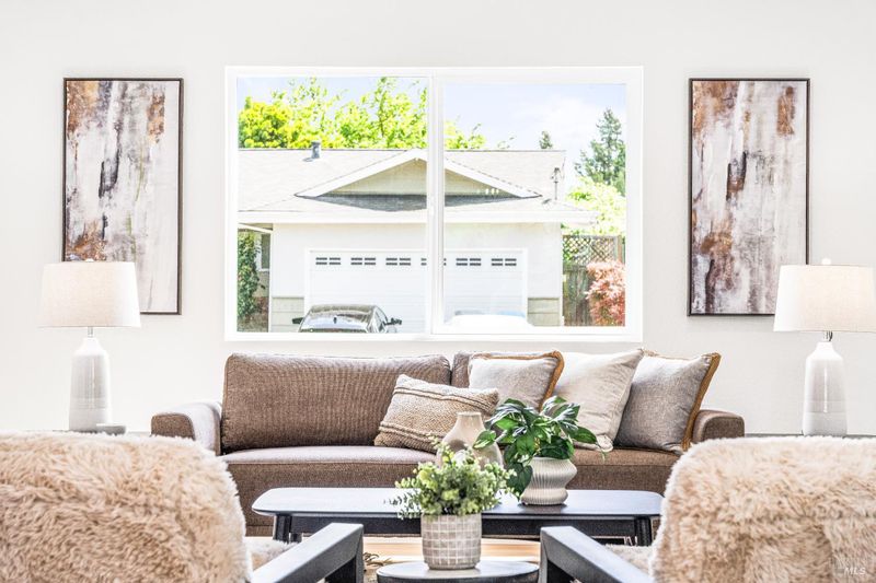 Located in the heart of Petaluma, this fully updated single-level home checks all the boxes. Offering 4 bedrooms, 2 bathrooms, and a 2-car garage, the home has been thoughtfully renovated with nearly every major system and surface refreshed - something you don't often see in this point. The updated high-efficiency kitchen has been completely reimagined with new cabinetry, updated countertops, and a clean, modern backsplash that brings in color. Both bathrooms have been upgraded with new vanities & and sleek finishes. Big-ticket items? Already done. Dual Pane windows, furnace, A/C, water heater, and Inside, new flooring, baseboards, doors, and hardware creating a curated elevated feel throughout. Step outside and you'll notice the difference immediately. Clean, well-designed landscaping gives the home curb appeal and pride. Meanwhile, the nicely sized flat backyard provides usable outdoor space and space to soak up the sun with your loved ones. Location is just as important. Just minutes to parks, shopping like Trader Joe's and Target, and everything happening in Downtown Petaluma. This home will not last. Come see it today!