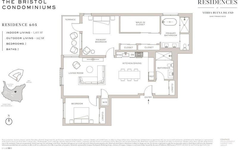 Brand new top floor 2 bed / 2 bath home in The Bristol. Enjoy water and Golden Gate Views. Large private patio and parking included. Sales Gallery located at 1 Bristol Ct. San Francisco 94130, parking provided.