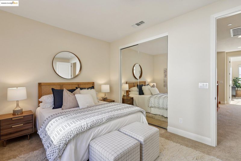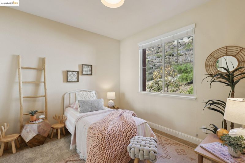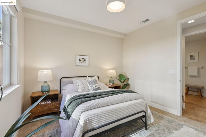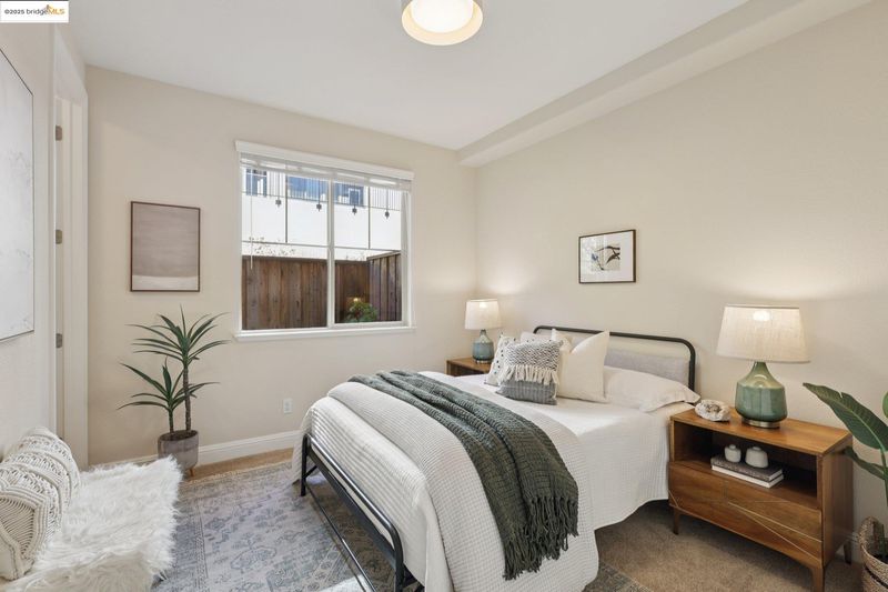 Discover elevated living in this stylish townhome perched in the sought-after Monte Vista Villas community of the Oakland Hills; Impeccably maintained by its original owners - who purchased it new in 2013 and thoughtfully upgraded it with solar power (owned), air conditioning, and much more; The main level showcases an open-concept floor plan with seamless flow to a balcony offering sweeping SF Bay views; A chef’s kitchen with premium finishes opens to a private rear yard - perfect for indoor/outdoor dining and entertaining - while a guest suite with full bath adds flexibility; Upstairs, the primary suite features inspiring views and a spa-like bath; Two additional bedrooms, a full bath, and a laundry room complete the top level; The street level includes an oversized two-car garage with direct interior access; Outdoors, you’ll enjoy serene greenbelt-style grounds with walking paths, a playground, and a fitness center; Located just minutes from Montclair Village’s charming shops and restaurants, with easy access to AC Transit to SF and Highways 580/13/24, this home offers the best of Oakland Hillside living - modern luxury with breathtaking vistas.