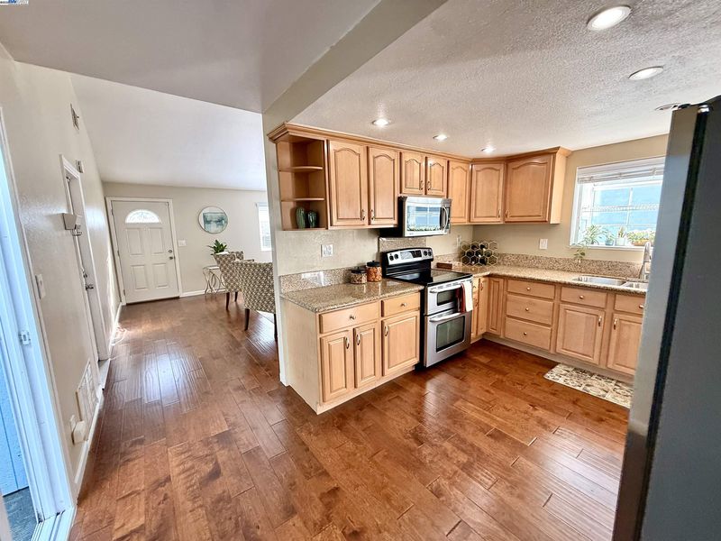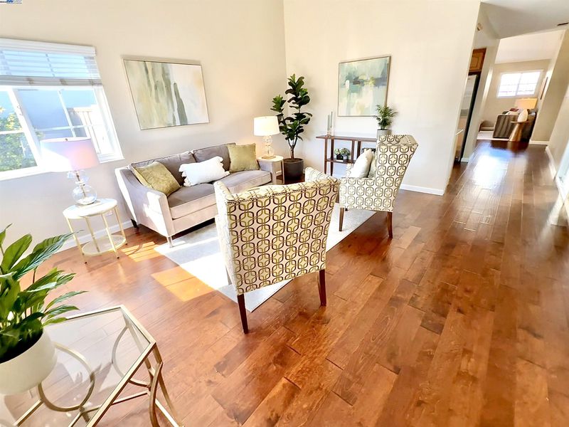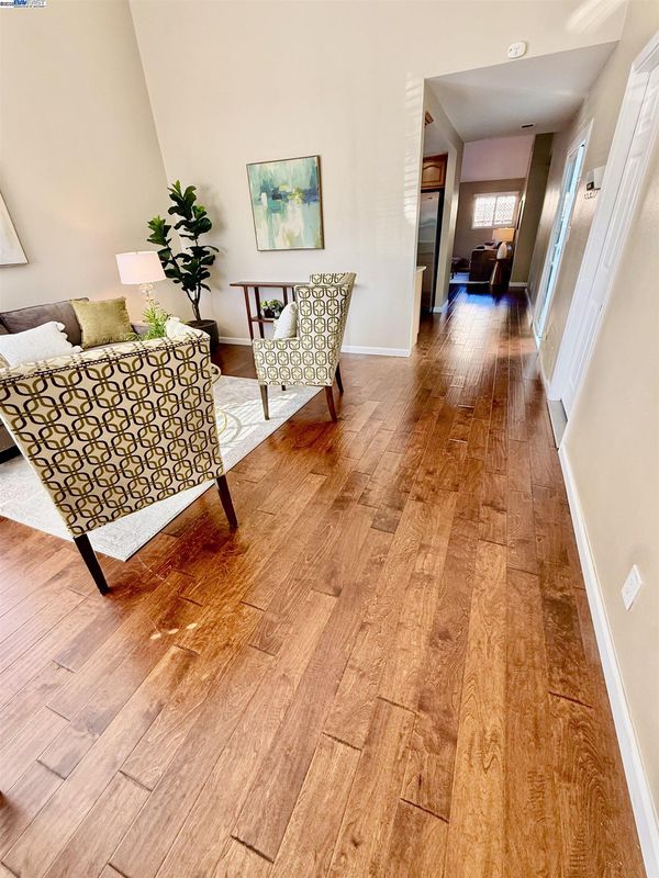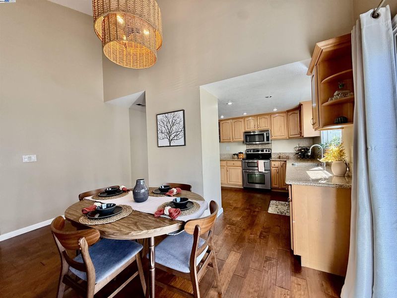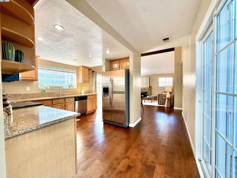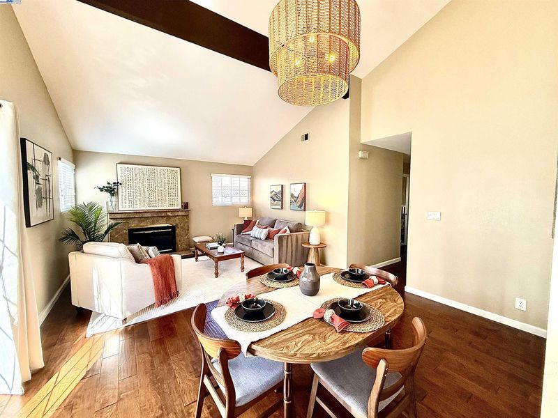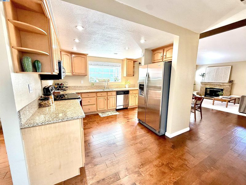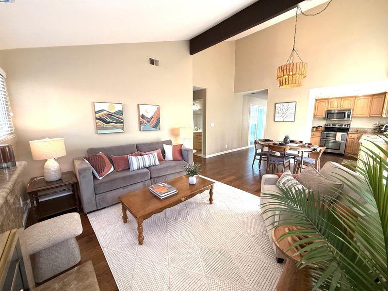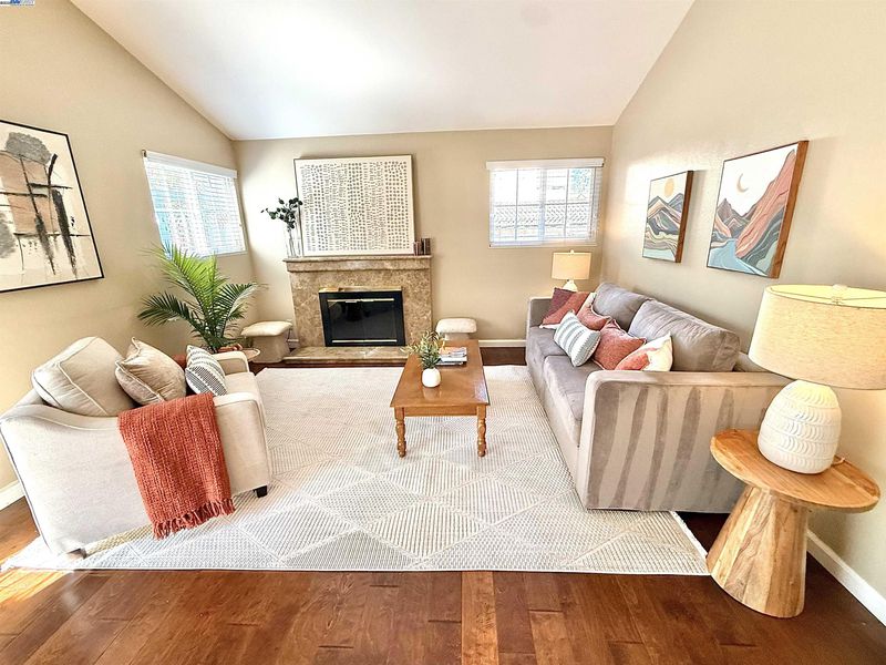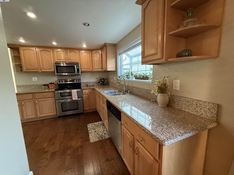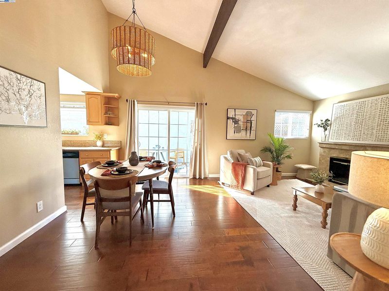 Turn the key and WOW there's nothing left to do but move in and start enjoying this beautiful single level home in a low traffic location close to everything:12 years of schools, strategic to all Bay Area commutes/BART, great shopping and restaurants, plus the location is just North of the core of Silicon Valley. High vaulted ceilings give this home a spacious feeling as well as the beautiful cherrywood-finished wood floors in main living areas. Enter the expansive living room that flows into the kitchen-dining-family room areas featuring an elegant custom marble fireplace and a slider out to the backyard. The remodeled kitchen has granite counters and rich wood cabinets, sunny greenhouse window, smooth top electric range, stainless steel appliances. A unique design feature is the interior courtyard accessed from the kitchen and the primary bedroom suite offering extra space for crafts or storage. Both bathrooms are sparkling fresh with nicely updated tiled showers. Double garage with insulated roll-up automatic door, attic storage, includes Samsung washer and dryer. The low maintenance backyard is designed for easy entertaining with pavers, fruit trees, outdoor dining area and a cute double swing. The roof was recently replaced. Inspections and pictures Tues. 11/4.