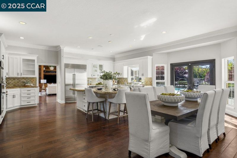 Welcome to 5655 Bruce Drive set on a flat 5.35-acre lot. This single-story country estate spans over 5,373 sq.ft. with 6 bedrooms, ( one used as an office), a bonus room, and 3.5 baths — offering flexibility for family and guests alike. The chef’s kitchen is the heart of the home, featuring high-end stainless steel appliances, a grand center island with seating, walk-in pantry, and large casual dining area. The spacious formal dining room can host large family get togethers, the living room intimate gatherings, while the family room showcases soaring ceilings, a fireplace, and wraparound bar. The primary suite and secondary bedroom sit on one side of the home, with additional bedrooms (including a junior suite) on the other. Mudroom, bonus room, & large laundry area complete the thoughtful floor plan. Outdoors, enjoy resort-style living with a covered pavilion and full outdoor kitchen, pool & spa, and expansive grounds lined with many fruit and nut trees. Additional features include hardwood flooring, new carpet and paint, video surveillance system and owned solar. For the equestrian there is a 6-stall barn plus multiple fenced pastures and space. Just minutes from top-rated DANVILLE schools, shopping, & dining offering luxury country living in the heart of Tassajara Valley.