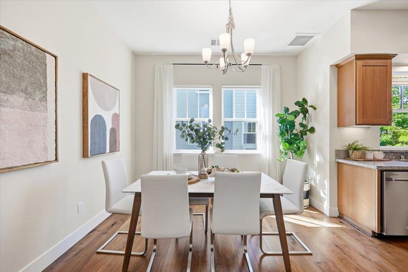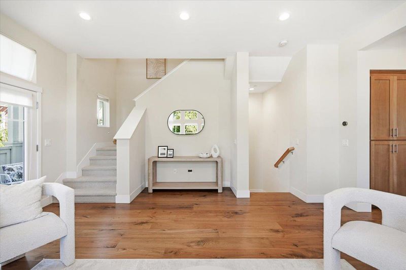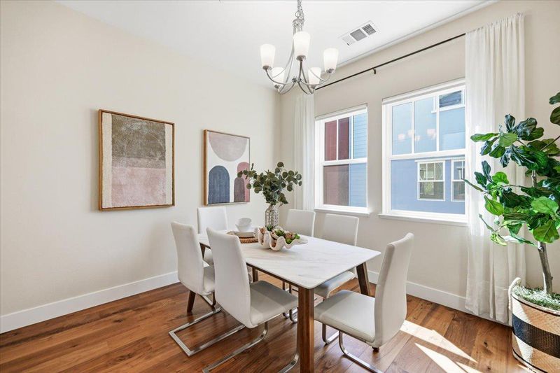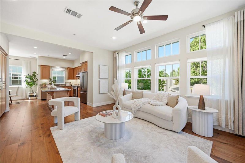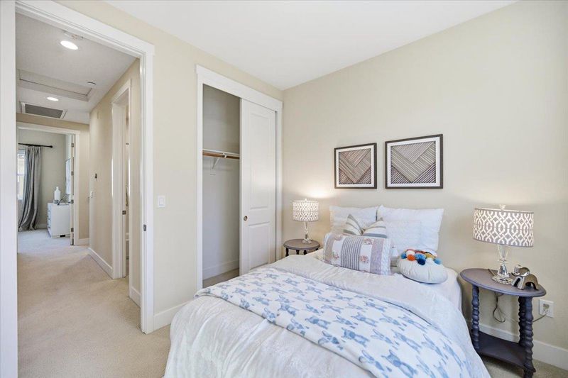 Bright and spacious newer townhome in a prime location of Mountain View. This desirable corner unit is situated in the center of the community, offering a quiet and private setting. This planned unit development allows ownership of both the structure and the land. The 1st level features a bedroom with a half bathroom, ideal for a home office or guest room, along with a two-car side-by-side garage equipped with an EV charger. The 2nd floor offers a bright open-concept great room with high ceilings and large windows. The sun filled living room offers high ceilings, tall windows and open to a private balcony. The kitchen features S/S appliances with high power range hood, an oversized island with bar seating. The dining area is right next to the kitchen with a window view. A half bathroom and laundry are also on this level for everyday convenience. The top floor features 3 bedrooms and 2 full bathrooms. The spacious primary bedroom is bright and spacious with a walk-in closet. The primary bathroom features a walk-in shower, and double vanity. This location is minutes away from tech giants like Google, Intuit, Meta, Apple, LinkeIn & 101 freeway, and just short stroll away from Rengstorff Park, community center, downtown, and San Antonio Village.