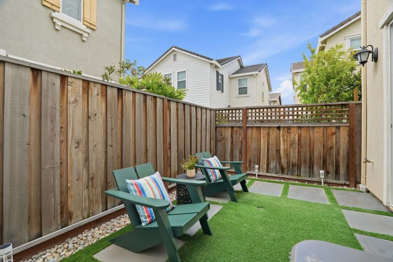 Spacious, bright, corner residence in the desirable Eden Shores community, offering easy commute to the Peninsula, SF & Menlo Park. Built in 2019, this like-new home features over $50,000 in builder upgrades, owned solar, and a Tesla Powerwall for energy efficiency. High ceilings and an open-layout create an inviting atmosphere, with expansive living and dining areas flowing into a chefs kitchen with a large quartz island, full-height backsplash, upgraded appliances, and RO water system. The main level includes a convenient powder room and opens to a low-maintenance landscaped backyard, perfect for relaxing or entertaining. Upstairs, a versatile loft offers flexibility for a home office, media room, gym, or potential 4th bedroom. The spacious primary suite features a spa-like bath with dual vanities, soaking tub, glass shower, and a large walk-in closet. Two additional bedrooms and an upstairs laundry room complete the upper level. Additional highlights include a two-car garage with epoxy flooring, EV-ready, tankless water heater, central heating/AC, and custom window treatments. Walkable to nearby parks, Costco, Starbucks, and local dining. Near BART, Highway 880, the San Mateo and Dumbarton Bridges for easy access to San Francisco, the Peninsula, and Silicon Valley.