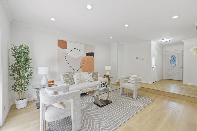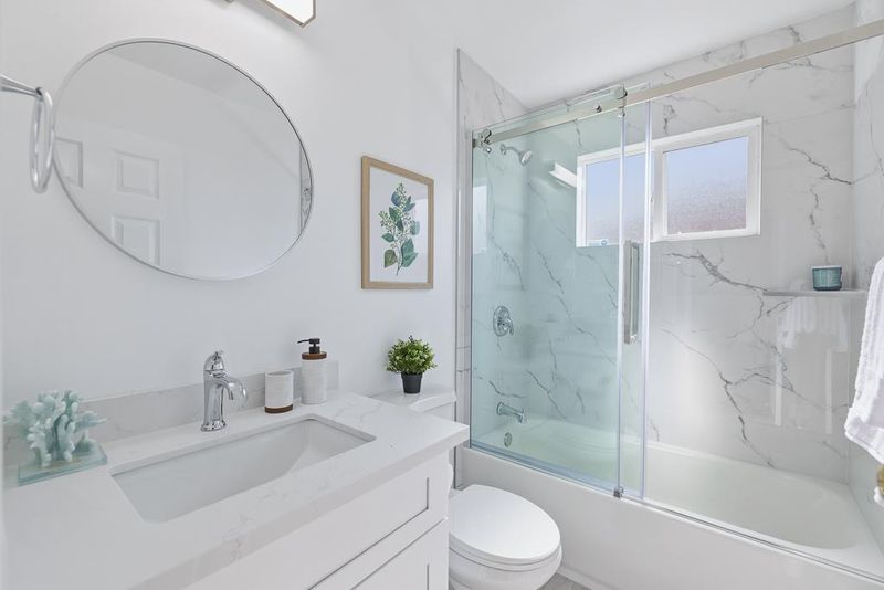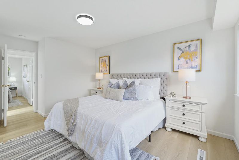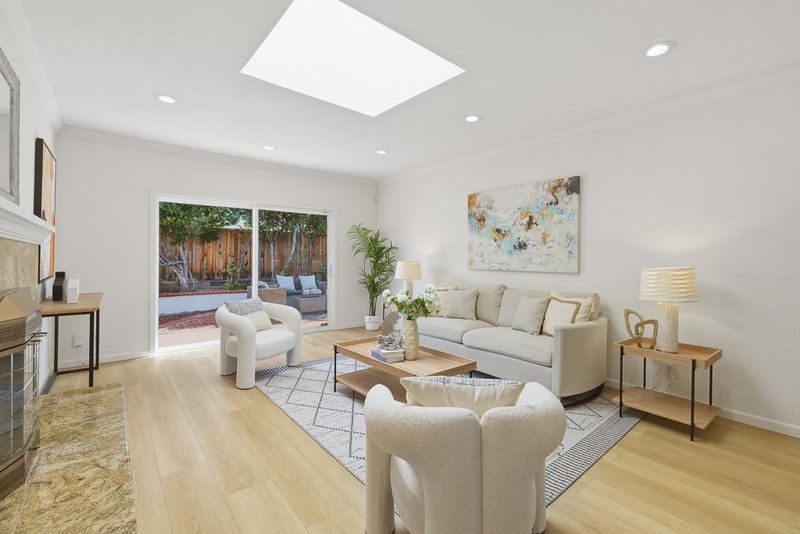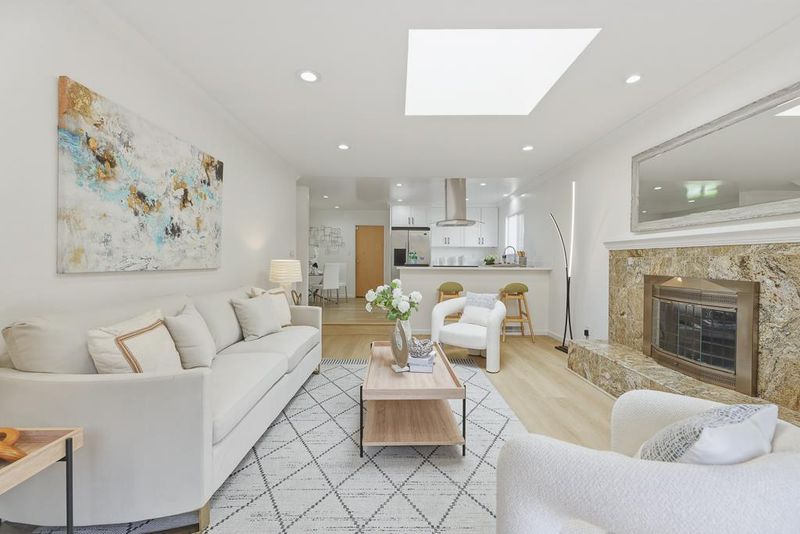Move-in ready home in a top-rated school district. The remodeled kitchen features quartz countertops, white shaker cabinets, and new appliances, including a range and a dishwasher. Both bathrooms are fully updated with new vanities, lighting, tile flooring, and modern barn-style glass doors. Major improvements include a brand-new roof, fresh interior and exterior paint, energy-efficient R8 HVAC ducting, and completed fumigation with subterranean termite treatment. Additional upgrades include LVP flooring throughout, recessed lighting in main living areas, new fixtures in all bedrooms, upgraded electrical outlets, a new 50-gallon water heater. Has central A/C. Skylight in the living room adds natural light, and the primary suite offers a walk-in closet. Walking distance to Safeway shopping plaza and library.