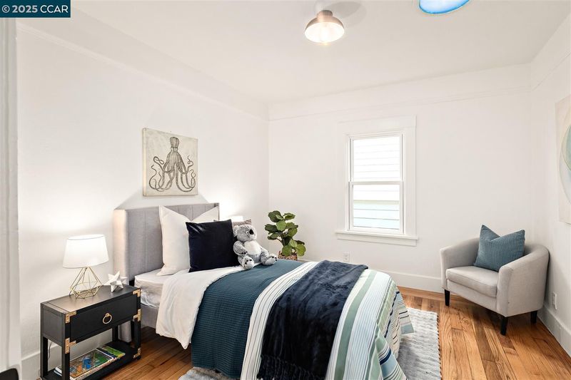 Welcome to 1233 Haskell Street in vibrant West Berkeley! This classic 1913 California Craftsman Bungalow blends character with modern updated comfort, offering 3 bedrooms, 1.5 baths, and a soulful connection to outdoor living meanwhile close to shops, parks, and restaurants. Step through the front door and experience the warmth of refinished hardwood floors, original built-ins, and natural light. Venture outside to an expansive, sun-drenched yard rarely found in Berkeley. Fruit trees, veggie beds, and a new patio/lawn invite weekend gardening, dinner parties under the stars, and lazy afternoons with friends. Inside, the updated kitchen features designer flooring,stainless-steel appliances including a new induction range, freshly painted cabinets, and a pantry for extra storage. The renovated bath adds a modern touch, while the back bedroom with half bath overlooks the garden. With fresh paint, new lighting, a newer roof, updated systems, and a one-car garage with storage, this home is truly move-in ready. Nearby are many restaurants, cafes, parks and easy access to BART, Berkeley Bowl, and the Bay. Your West Berkeley lifestyle starts here! OPEN SAT 2-4:30 and SUN 12-345pm