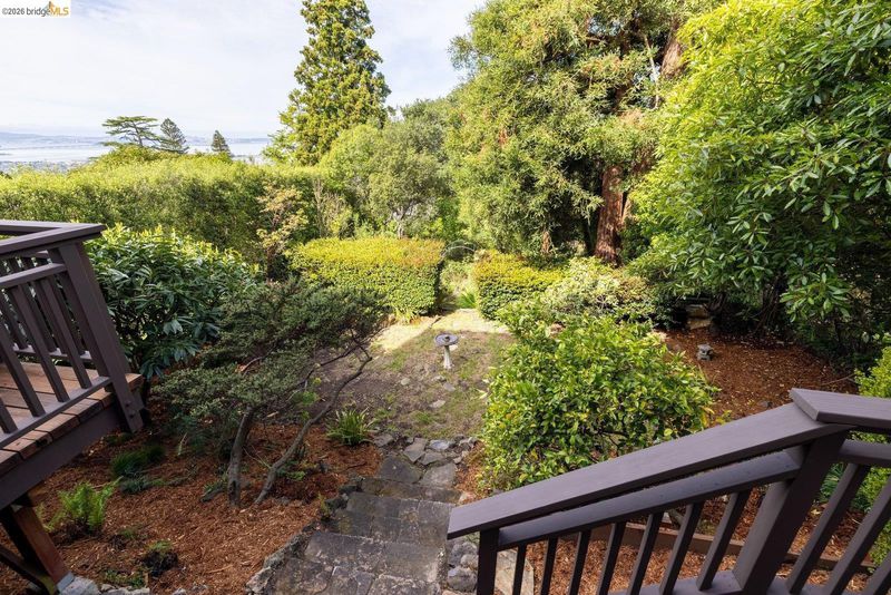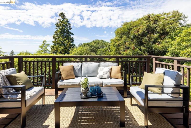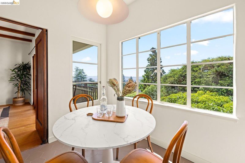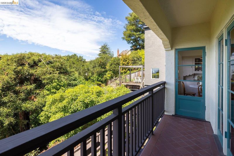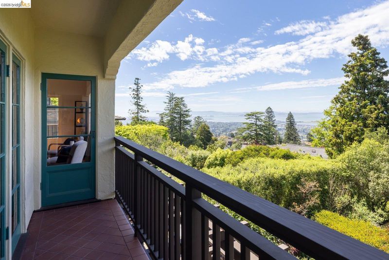 Built in 1932 and set along a coveted stretch of Euclid Avenue in the North Berkeley Hills, this distinctive Spanish Mediterranean residence offers scale, character, and sweeping Bay views. Spanning over 3,000 square feet, the home is defined by its volume and architectural detail, including exposed wood beam ceilings, rich hardwood floors, and a dramatic living room anchored by a fireplace and grand, period windows that frame the surrounding greenery and outlooks toward the Bay. The formal dining room opens to a balcony, creating an easy flow for entertaining and everyday living. The kitchen blends classic design with thoughtful updates and connects to a bright breakfast nook featuring beautiful built-in original cabinetry. Three bedrooms and three baths are well distributed, while additional living spaces with tiled floors and built-in details provide flexibility for a variety of uses. Both upstairs bedrooms feature their own enclosed balcony with beautiful outlooks, offering a quiet retreat above the surrounding landscape. Set on a 7,700 square foot lot, the grounds feature mature landscaping and multiple outdoor areas, including a well-appointed lower level deck overlooking the rear garden, ideal for dining, relaxing, or entertaining. The setting offers a strong sense of privacy while capturing the natural beauty of the hillside.